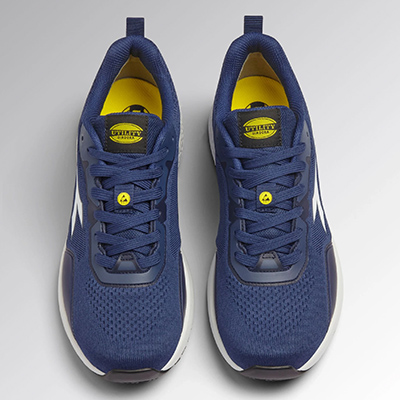 Calzatura da lavoro bassa della Diadora Utility modello CREW EVO O1 SR ESD priva di elementi di protezione (puntale e inserto anti perforazione) secondo la normativa EN 20347: 2022. Tomaia in tessuto poliestere ingegnerizzato con rinforzi in poliuretano applicato con tecnologia 3D print. Fodera in 3D Mesh con anti scalzante in microfibra. Calzata 10. Plantare estraibile microforato in EVA termoformata e tessuto in poliestere, conforme alla normativa 20347:2022. Metal free.