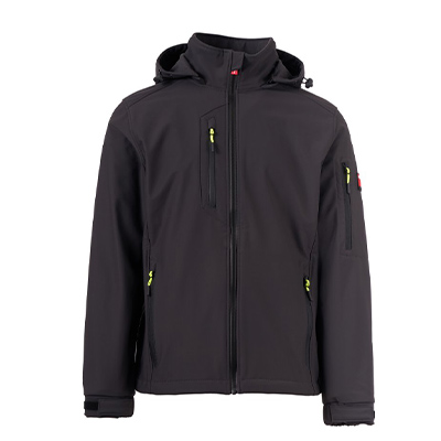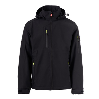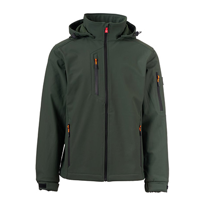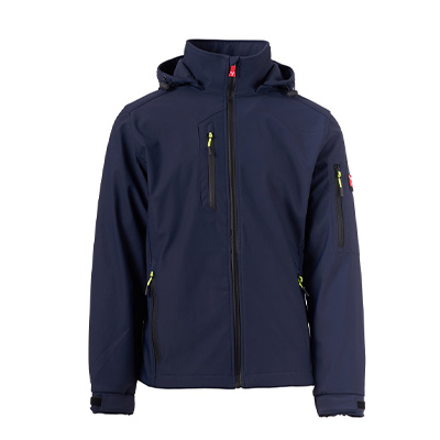 Giaccone PAYPER WP 8000 mm H₂O, WVT 5000 g/m² 24h Soft-shell 2 strati, dall’imbottitura leggera (100g/m²), da uomo, chiusura tramite zip SBS con cursore in metallo “semi-auto lock” e tiretto personalizzato. Cappuccio removibile, con coulisse regolabile. Bande retroriflettenti su fondoschiena e retro cappuccio. Polsini elasticizzati, regolabili con chiusura a strappo. Due tasche laterali con zip, una tasca al petto con zip spalmata e una tasca sul braccio sinistro con porta penne integrato, chiusa con zip. Tiretti fluorescenti. Una tasca a filetto interna, con chiusura a strappo. Fondo regolabile con stopper personalizzati.
